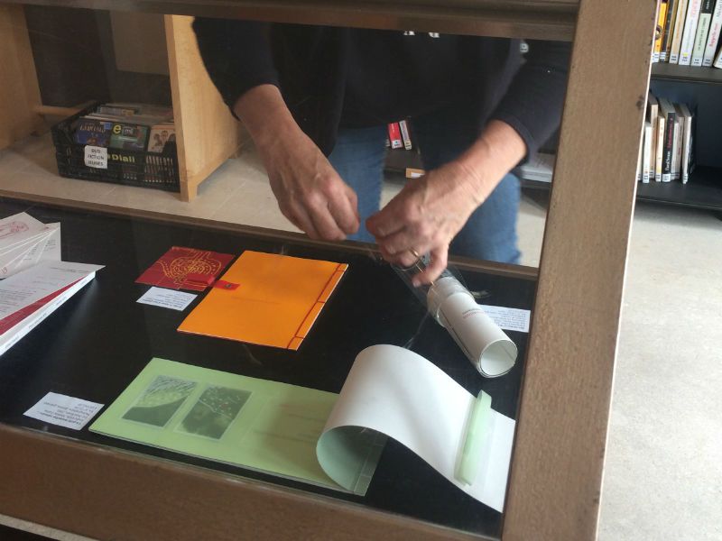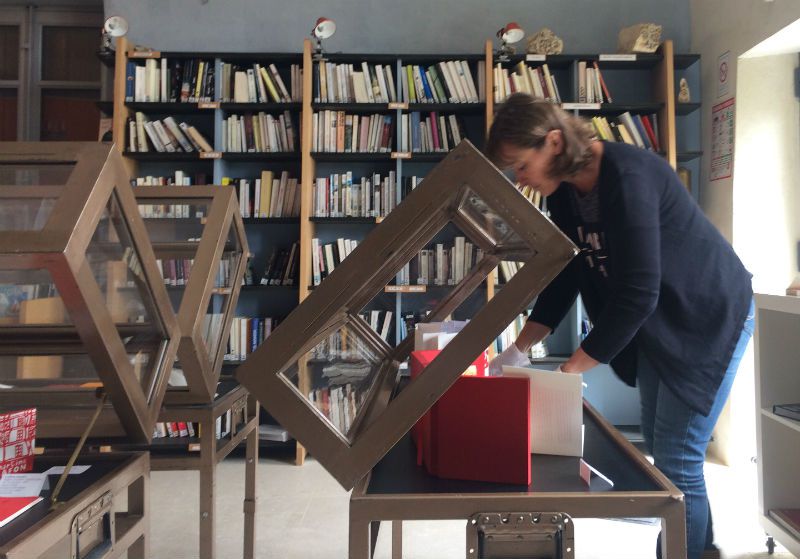 L'exposition à la bibliothèque de Vallabrix se met en place. Attention, 4 jours pour découvrir les créations de Martine Lafon, du 14 au 19 mai