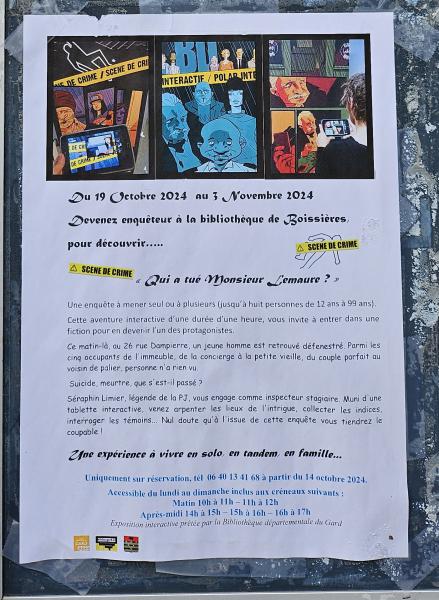Dernier outil d'animation mis en service à la DLL, cet escape game est accueilli par la bibliothèque de Boissières pour ces vacances scolaires.