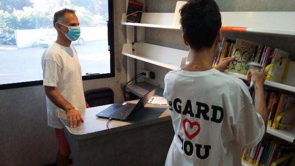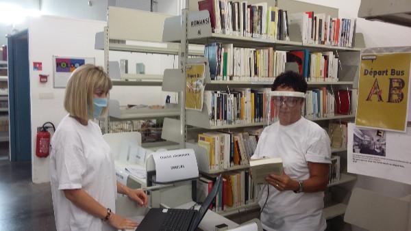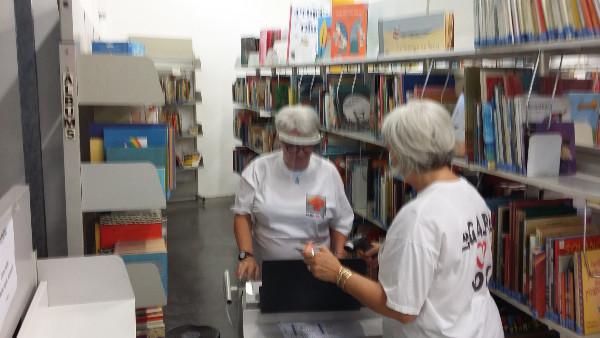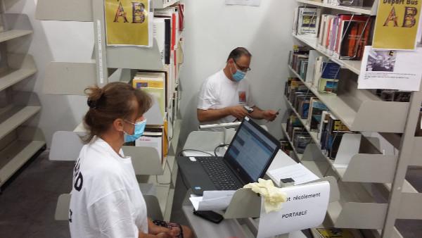 Toute l'équipe est fin prête, aux premières heures, pour faire un inventaire général de la collection. On évite la grosse chaleur, on bipe chaque code barre, le mois de juillet sera bien occupé. En attendant la rentrée pour de nouveaux services....